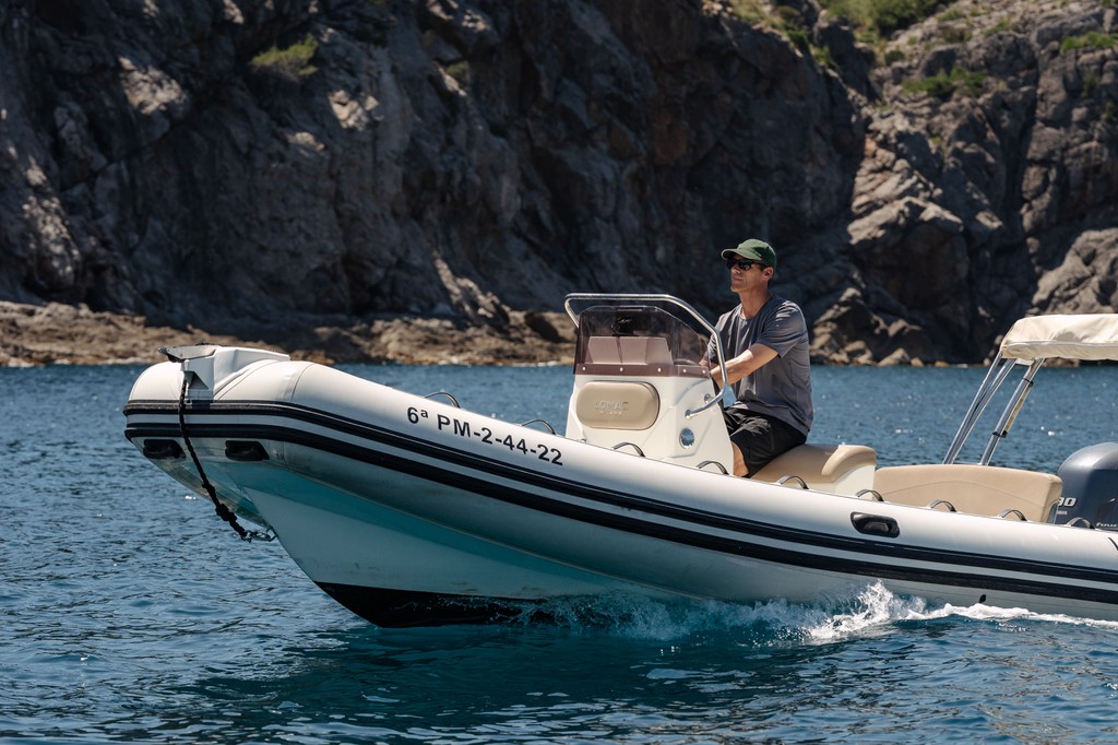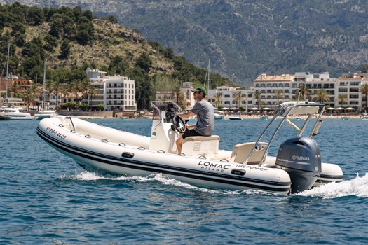 We present you our Lomac 600in charter boat, from August 2018, with capacity for 6 people, equipped with a Yamaha 100hp outboard motor with very efficient consumption (boat license is needed). Located in Puerto de Sóller, unique in the Sierra de Tramontana (World Heritage), you can have direct and fast access to the best corners of the island such as Sa Calobra, Cala Tuent, Sa Foradada, Cala Deia, etc. This Lomac charter boat is ideal for all kinds of water sports such as wake board, water ski, or donut. The boat has all the necessary equipment to carry out these activities.